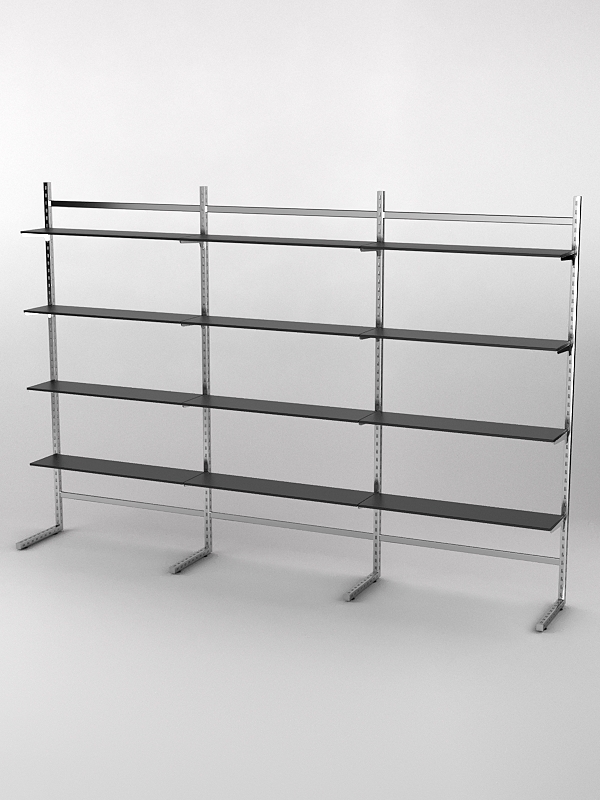 Система «Элегант» — представляет собой стальные перфорированные L-образные стойки длиной 2400мм, сечением трубы 38х38мм с фурнитурой. Стойки скрепляются между собой через определенные расстояния металлическими стяжками. Специализированная фурнитура представляет собой крючки, кронштейны, поручни и полкодержатели, которые вставляются в пазы стоек. Высота и ширина текущей конструкции может быть уменьшена, либо увеличена по желанию заказчика. Также возможен вариант размещения зеркальных или ЛДСП панелей, или экономпанелей между стойками, что позволит придать помещению эксклюзивный вид.