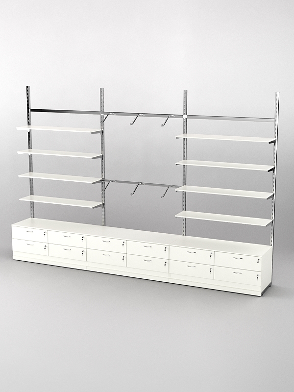Пристенная торговая система "Bazic" №9 без задней стенки с тумбами Т-14 (3600мм), Белый