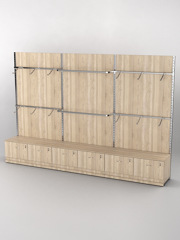 Система торговая Bazic №3 пристенная с ДСП и тумбами Т-15 и Т-21 (3600мм), Дуб Сонома