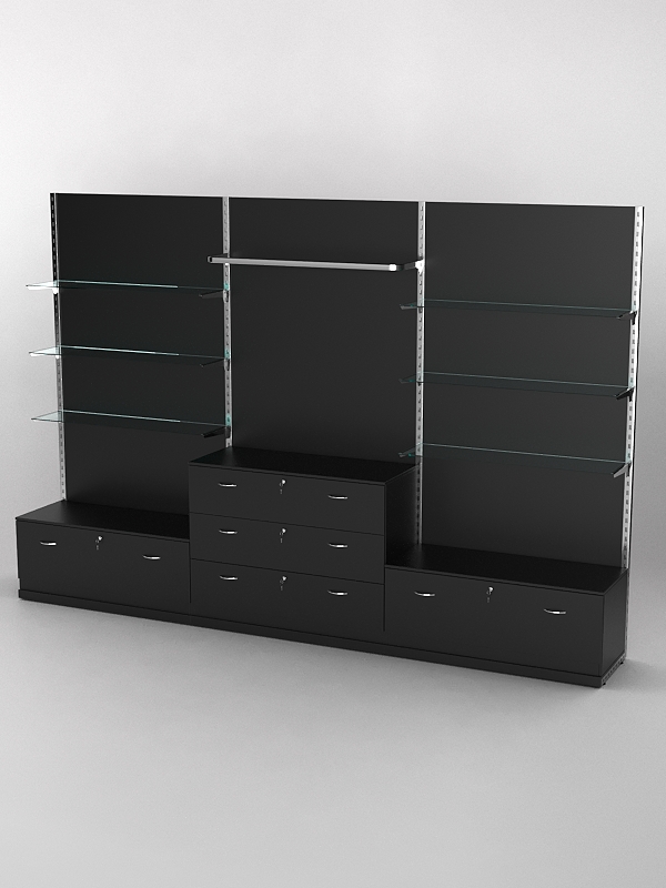 Система торговая Bazic №6 пристенная с ДСП и тумбами Т-11 и Т-13 (3600мм), Черный