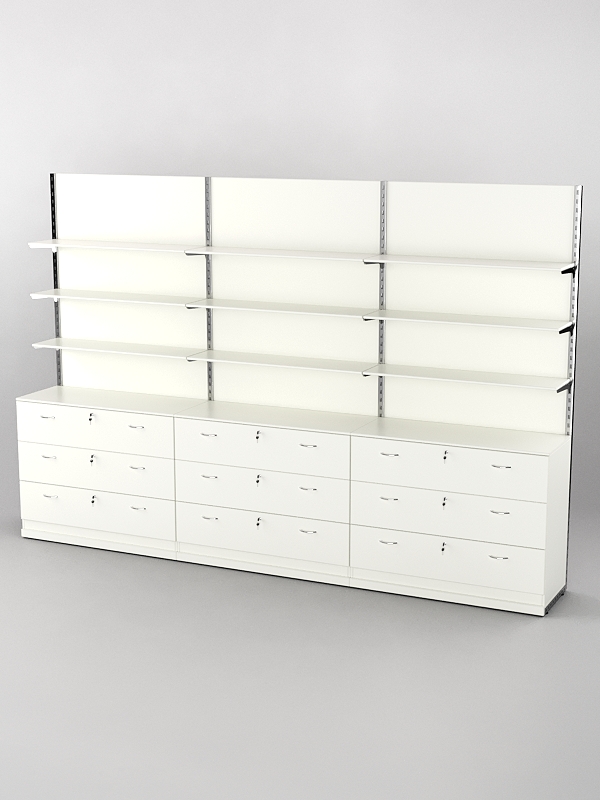 Система торговая Bazic №8 пристенная с ДСП и тумбами Т-12 (3600мм), Белый