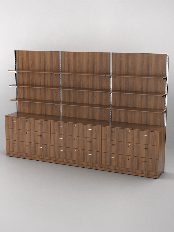 Система «Элегант» — представляет собой стальные перфорированные L-образные стойки длиной 2400мм, сечением трубы 38х38мм с фурнитурой. Стойки скрепляются между собой через определенные расстояния металлическими стяжками. Специализированная фурнитура представляет собой крючки, кронштейны, поручни и полкодержатели, которые вставляются в пазы стоек. Высота и ширина текущей конструкции может быть уменьшена, либо увеличена по желанию заказчика. Также возможен вариант размещения зеркальных или ЛДСП панелей, или экономпанелей между стойками, что позволит придать помещению эксклюзивный вид.