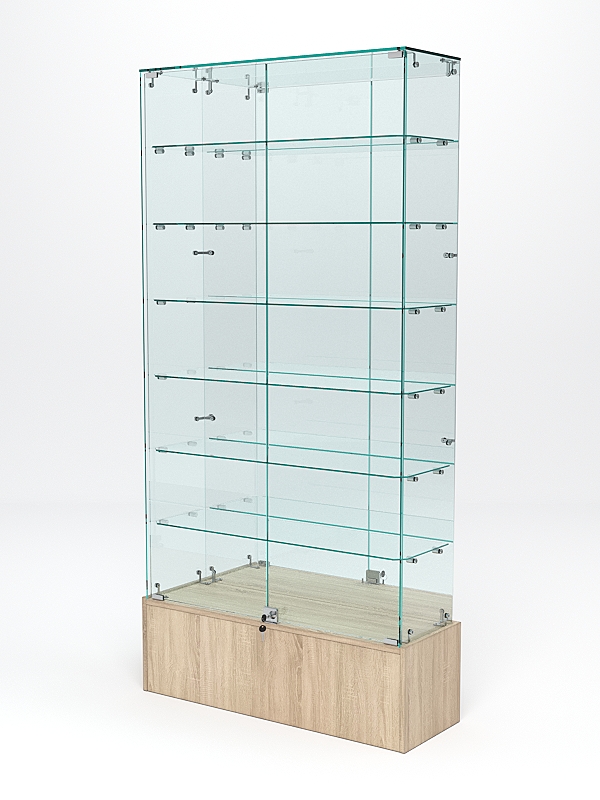 Витрина стеклянная "ИСТРА ПОДИУМ" №36 (с дверками, задняя стенка — зеркало), Дуб Сонома