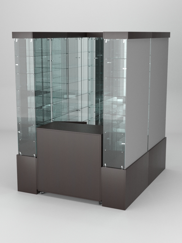 Глубина витрин в 30 см позволяет размещать более крупную продукцию. Здесь отлично будут смотреться ювелирные украшения и часы, переливаясь огнями в стеклянных витринах. Подойдет и для тех, кто планирует установку павильона для продажи планшетных компьютеров и мобильных телефонов.