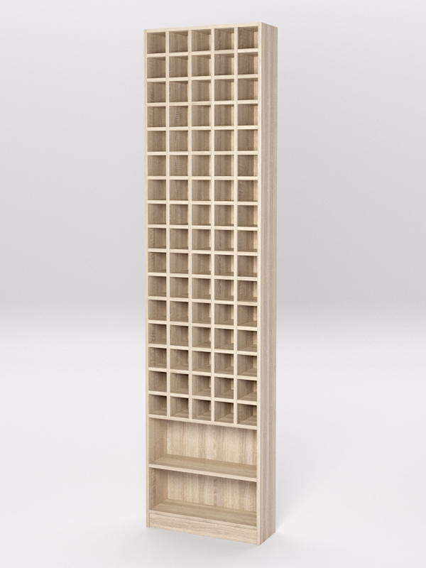 Стенд содержит 80 ячеек под галстуки и отделение с полкой для других предметов мужского гардероба.
