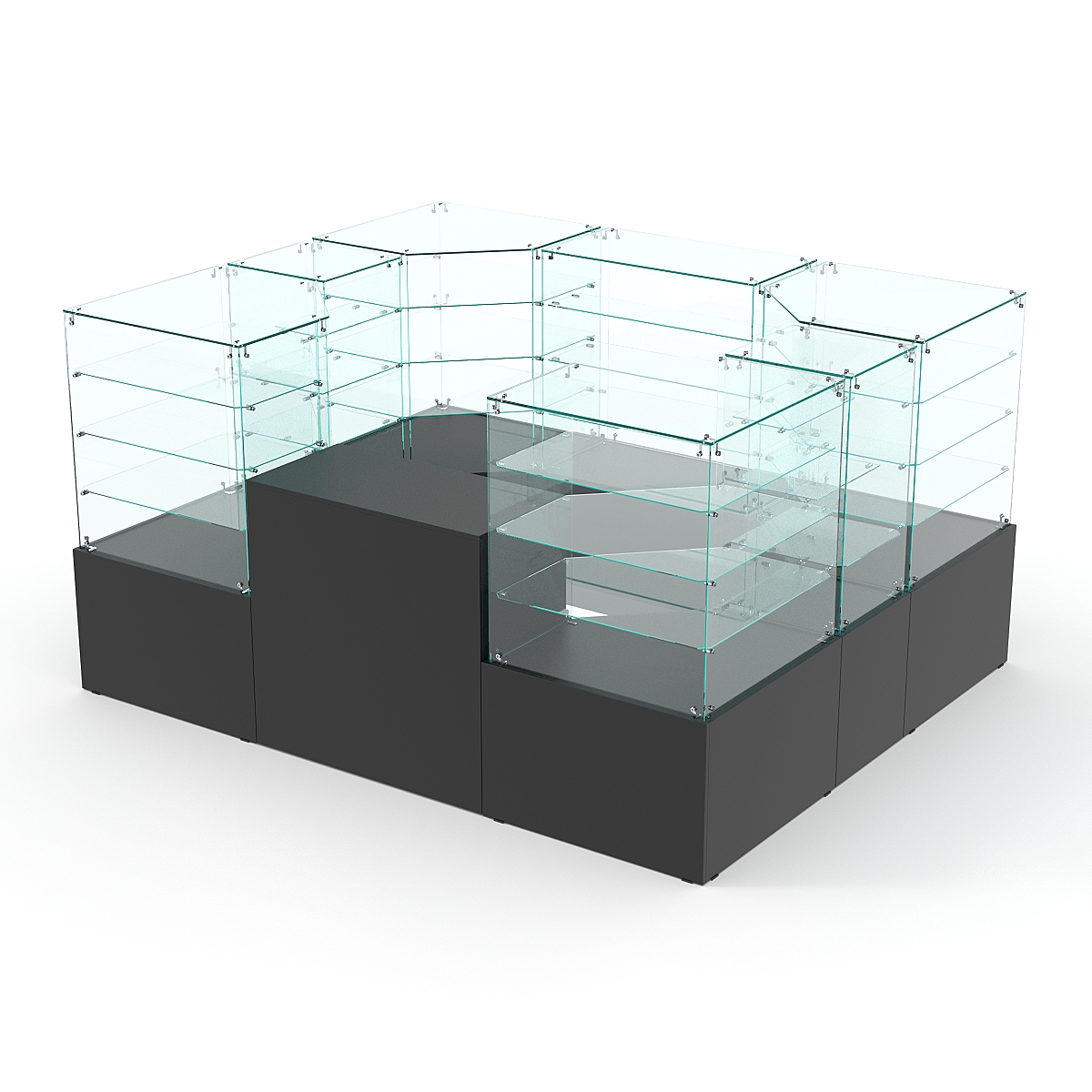 • У витрин предусмотрена небольшая высота, благодаря ней, модель можно размещать в торговом зале по центру;