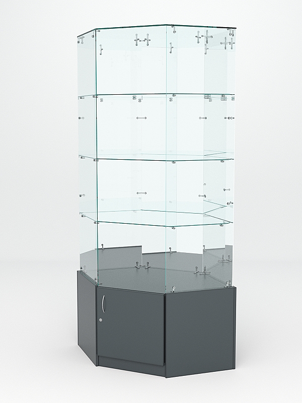 Витрина стеклянная "ИСТРА" угловая №120 шестигранная (без дверки задние стенки — зеркало), Темно-Серый