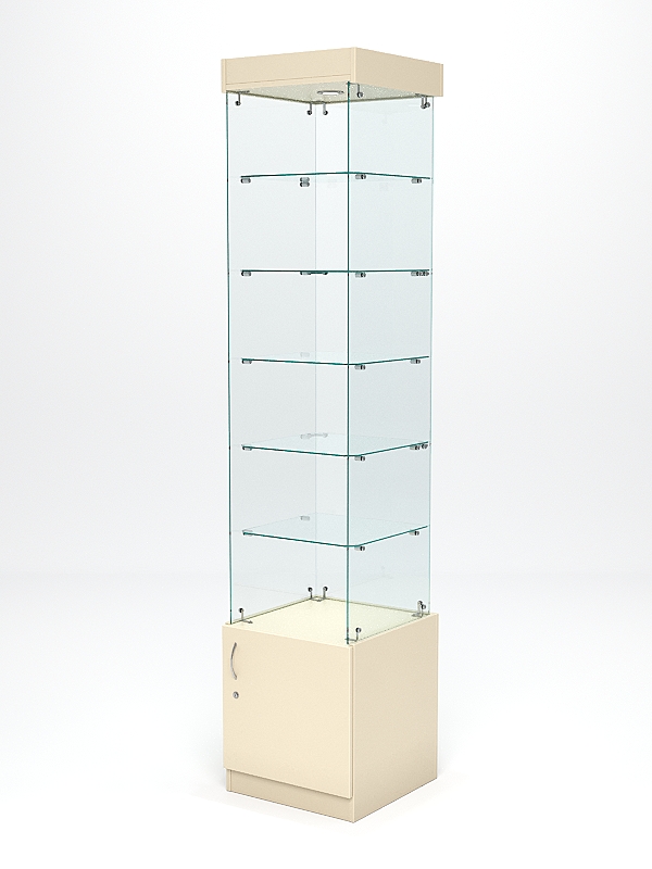 Витрина стеклянная "ИСТРА" №602 (без дверки, задняя стенка — стекло), Крем Вайс
