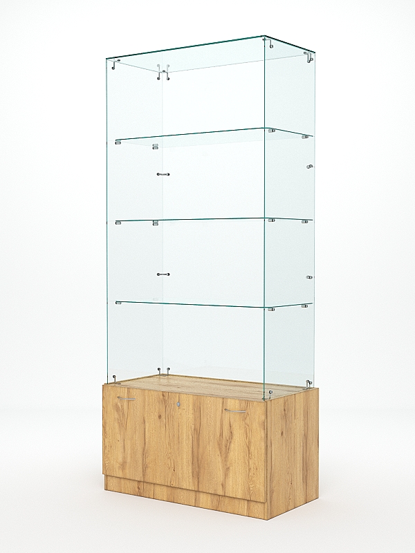 Витрины стеклянные серии «КРИСТАЛЛ» представляют собой аналог витрин «ИСТРА» с нижним накопителем высотой 505мм, в котором предусмотрен выдвижной ящик; прозрачными боковинами и задней стенкой из стекла или зеркала. Абсолютно стеклянные по периметру варианты витрин «КРИСТАЛЛ» позволяют потенциальному покупателю осмотреть товар, который представлен на полках витрины, со всех сторон. Витрина собирается в течение 1,5 часов и является незаменимым «помощником» в продвижении товара различных брендов.