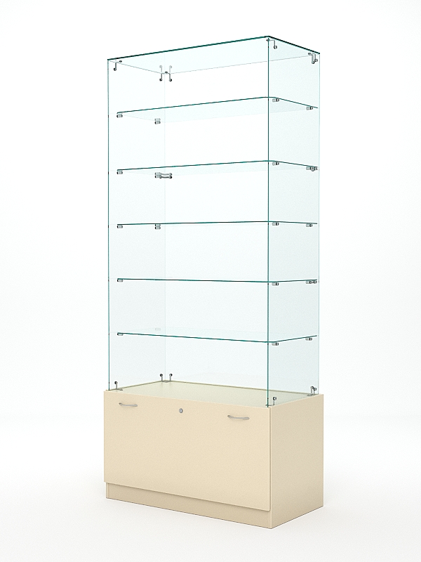 Витрины стеклянные серии «КРИСТАЛЛ» представляют собой аналог витрин «ИСТРА» с нижним накопителем высотой 505мм, в котором предусмотрен выдвижной ящик; прозрачными боковинами и задней стенкой из стекла или зеркала. Абсолютно стеклянные по периметру варианты витрин «КРИСТАЛЛ» позволяют потенциальному покупателю осмотреть товар, который представлен на полках витрины, со всех сторон. Витрина собирается в течение 1,5 часов и является незаменимым «помощником» в продвижении товара различных брендов.