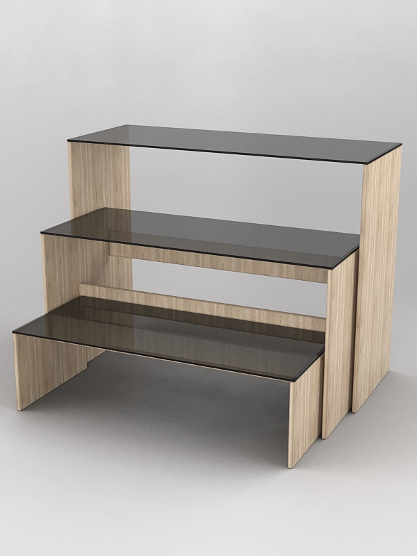 Основа подиума изготавливается из ЛДСП толщиной 16мм, верх из тонированного стекла толщиной 8мм.