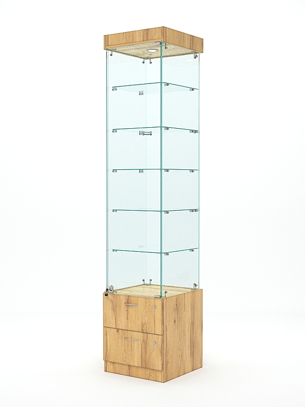 Витрина стеклянная "ХРУСТАЛЬ" №502 (с дверкой, задняя стенка — стекло), Дуб Золотистый