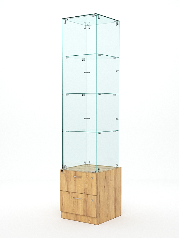 Витрины стеклянные серии «ХРУСТАЛЬ» представляют собой аналог витрин «ИСТРА» с нижним накопителем высотой 505мм, в который встроены несколько выдвижных ящиков; прозрачными боковинами и задней стенкой из стекла или зеркала. Абсолютно стеклянные по периметру варианты витрин «ХРУСТАЛЬ» позволяют потенциальному покупателю осмотреть товар, который представлен на полках витрины, со всех сторон. Витрина собирается в течение 1,5 часов и является незаменимым «помощником» в продвижении товара различных брендов.