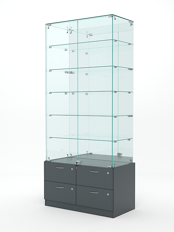 Витрина стеклянная "ХРУСТАЛЬ" №507 (с дверками, задняя стенка — зеркало), Темно-Серый
