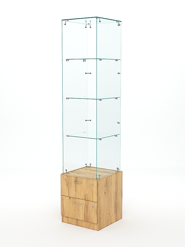 Витрины стеклянные серии «ХРУСТАЛЬ» представляют собой аналог витрин «ИСТРА» с нижним накопителем высотой 505мм, в который встроены несколько выдвижных ящиков; прозрачными боковинами и задней стенкой из стекла или зеркала. Абсолютно стеклянные по периметру варианты витрин «ХРУСТАЛЬ» позволяют потенциальному покупателю осмотреть товар, который представлен на полках витрины, со всех сторон. Витрина собирается в течение 1,5 часов и является незаменимым «помощником» в продвижении товара различных брендов.