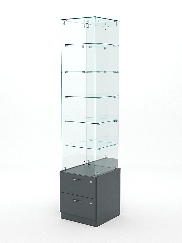 Витрина стеклянная "ХРУСТАЛЬ" №608 (без дверки, задняя стенка — зеркало), Темно-Серый