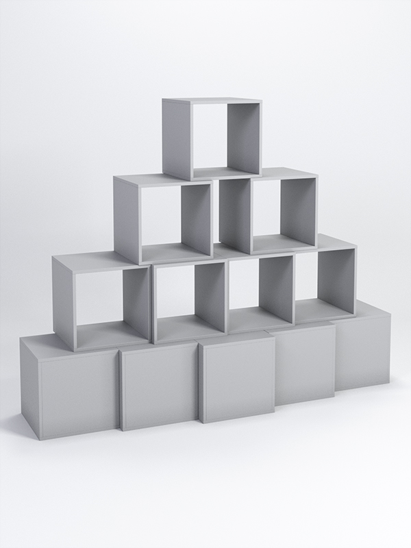 Модули серии Куб производятся из качественной ДСП различных цветов. Модули могут комбинироваться в любом порядке, что позволяет создавать оригинальные конструкции. Благодаря универсальной форме в виде куба, в модуле можно разместить любые предметы: одежду, сумки, украшения для дома, книги, мелкие аксессуары.