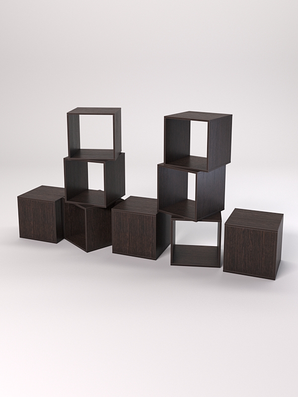 Модули серии Куб производятся из качественной ДСП различных цветов. Модули могут комбинироваться в любом порядке, что позволяет создавать оригинальные конструкции. Благодаря универсальной форме в виде куба, в модуле можно разместить любые предметы: одежду, сумки, украшения для дома, книги, мелкие аксессуары.