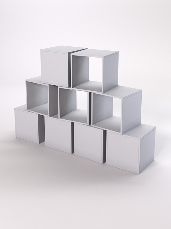 Модули серии Куб производятся из качественной ДСП различных цветов. Модули могут комбинироваться в любом порядке, что позволяет создавать оригинальные конструкции. Благодаря универсальной форме в виде куба, в модуле можно разместить любые предметы: одежду, сумки, украшения для дома, книги, мелкие аксессуары.