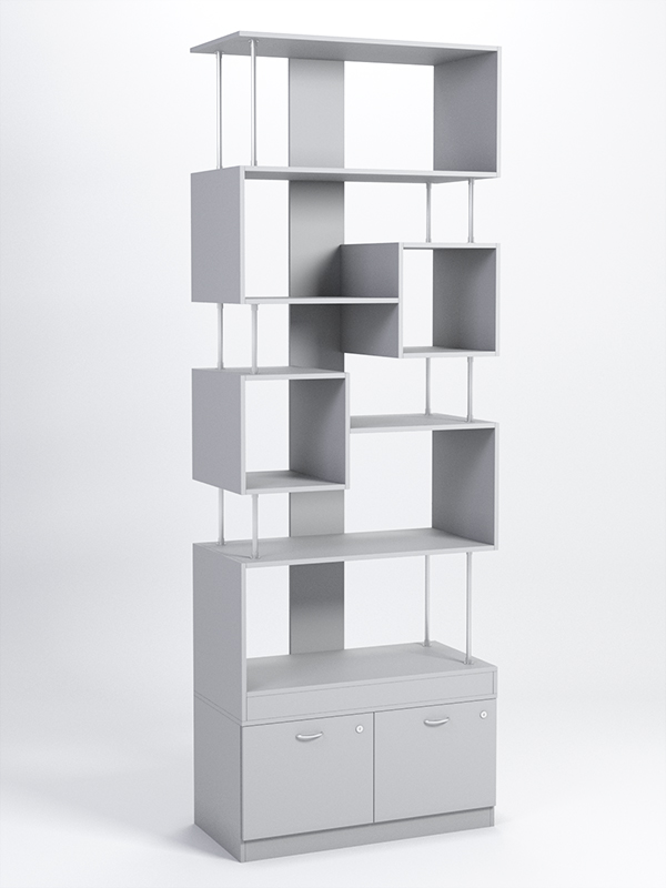 Стеллажи серии Куб отличает необычный дизайн, в котором используются геометрические мотивы. Прямые линии, симметричные элементы, ровные контуры, оригинальные сочетания деталей — все это воплощено в моделях стеллажей.