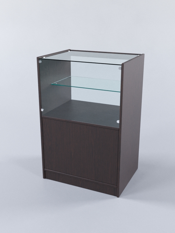 Прилавок «Тандем» №3-600мм с остекленным верхом предназначен для магазинов различного профиля. Прилавок изготовлен из ЛДСП 16мм с кромкой ПВХ. Фасадное и горизонтальное стекло толщиной 5мм с полировкой держится на хромированных держателях с винтовыми зажимами. Со стороны продавца прилавок открыт. Есть возможность доставить дополнительные полки.