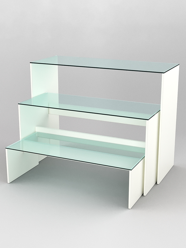 Основа подиума изготавливается из ЛДСП толщиной 16мм, верх — из прозрачного стекла толщиной 6мм.