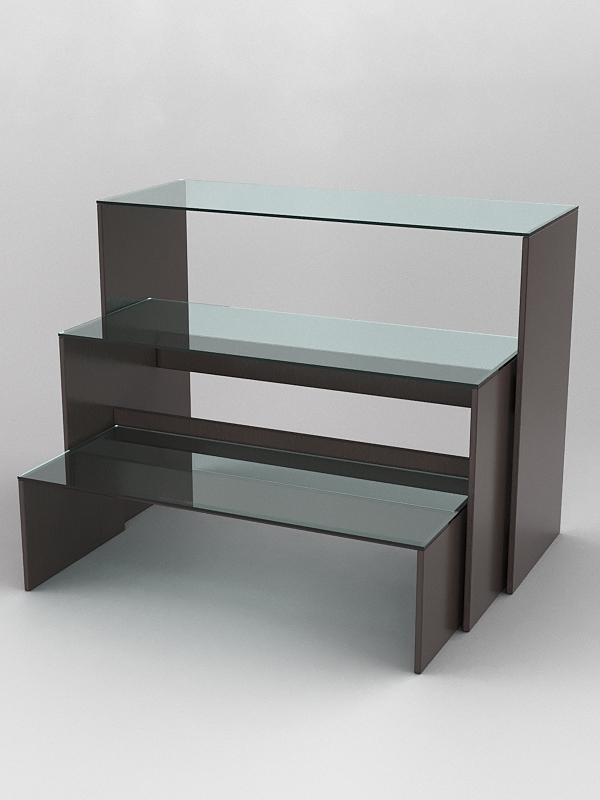 Основа подиума изготавливается из ЛДСП толщиной 16мм, верх — из прозрачного стекла толщиной 6мм.