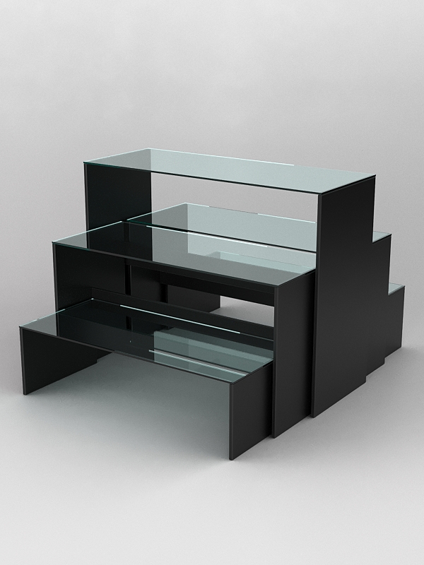 Основа подиума изготавливается из ЛДСП толщиной 16мм, верх — из прозрачного стекла толщиной 6мм.