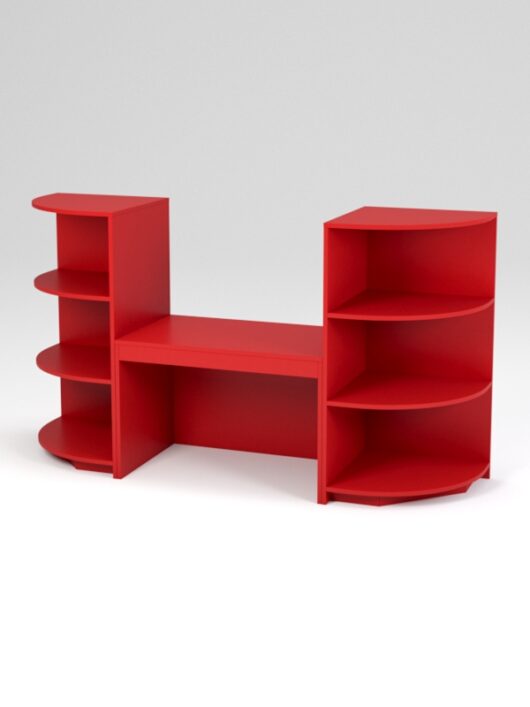 Данная модель сочетает функцию скамейки и стеллажа. Каркас выполнен из ЛДСП ярких цветов. Габариты модуля соответствуют детскому росту.