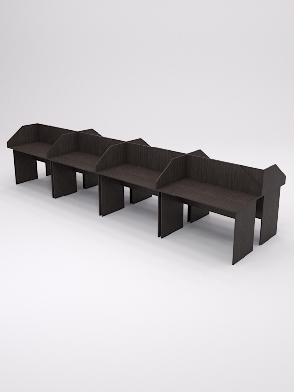 Широко используется в офисных помещениях в качестве рабочего места сотрудника организации. Экран — надстройка сверху столешницы, позволяет обособить личное пространство каждого сотрудника. Столы, составленные в ряд, создают единый офисный ансамбль, который отлично смотрится как в Бизнес-центрах класса А, В, С.