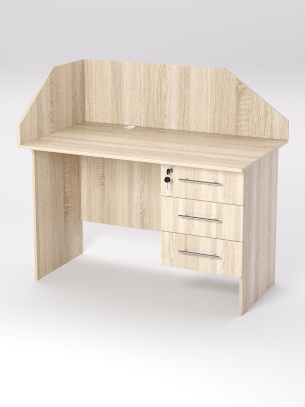 Стол однотумбовый правосторонний состоит из 2х элементов: стола и тумбы. Тумба расположена с правой стороны от сотрудника. В ней предусмотрено 3 ящика, верхний ящик закрывается на замок. Инструкция по сборке не требуется.