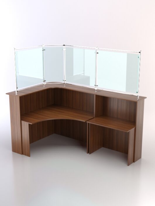 Стойка ресепшен для администратора с надставкой подойдет медицинским учреждений и банковской сфере.
