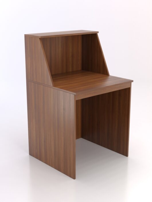 Недорогой компактный стол для ресепшена из ЛДСП с надстройкой для небольших организаций.
