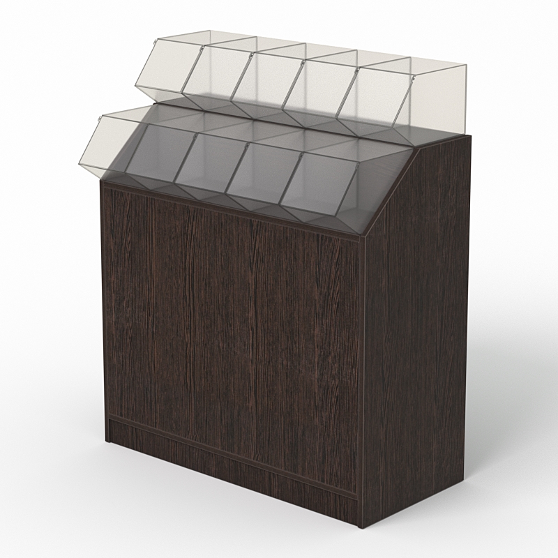 Прилавки с диспенсерами для конфет, печенья, орехов наиболее распространены в гипермаркетах и палатках-островках торговых центров. Система позволяет легко взять желаемый товар. Закрытая конструкция обеспечивает сохранность товара от пыли, влажности и других неблагоприятных воздействий.