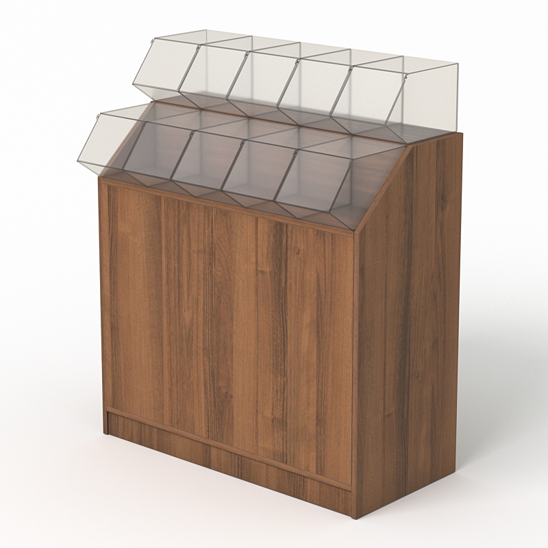 Прилавки с диспенсерами для конфет, печенья, орехов наиболее распространены в гипермаркетах и палатках-островках торговых центров. Система позволяет легко взять желаемый товар. Закрытая конструкция обеспечивает сохранность товара от пыли, влажности и других неблагоприятных воздействий.