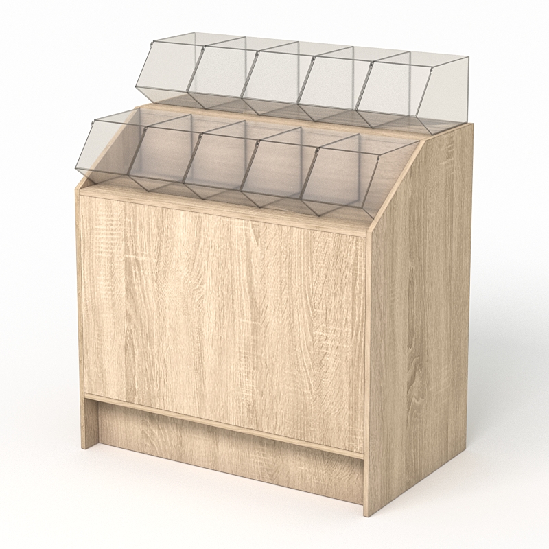 Прилавки с диспенсерами для конфет, печенья, орехов чаще всего размещаются в супермаркетах и торговых центрах. Откидывающаяся передняя стенка диспесера обеспечивает удобный доступ к продукции, а также защищает ее от пыли и внешних воздействий.