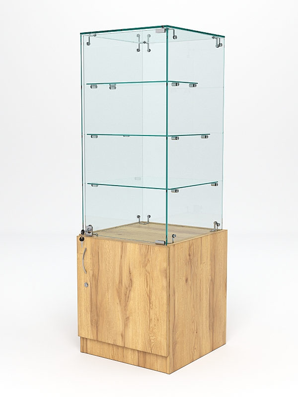 Витрина стеклянная "ИСТРА" островная №326 (с дверкой, фасад -стекло), Дуб Золотистый