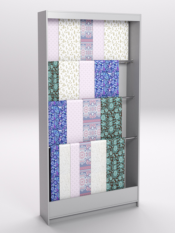 Лучшее решение для продавца — использовать специальные стеллажи. Конструкция стеллажа позволяет расположить ткань в развешенном состоянии, избавляет ее от смятия, обеспечивает легкий доступ для тактильного контакта.