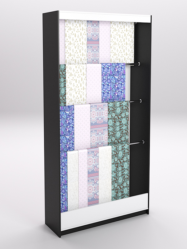 Лучшее решение для продавца — использовать специальные стеллажи. Конструкция стеллажа позволяет расположить ткань в развешенном состоянии, избавляет ее от смятия, обеспечивает легкий доступ для тактильного контакта.