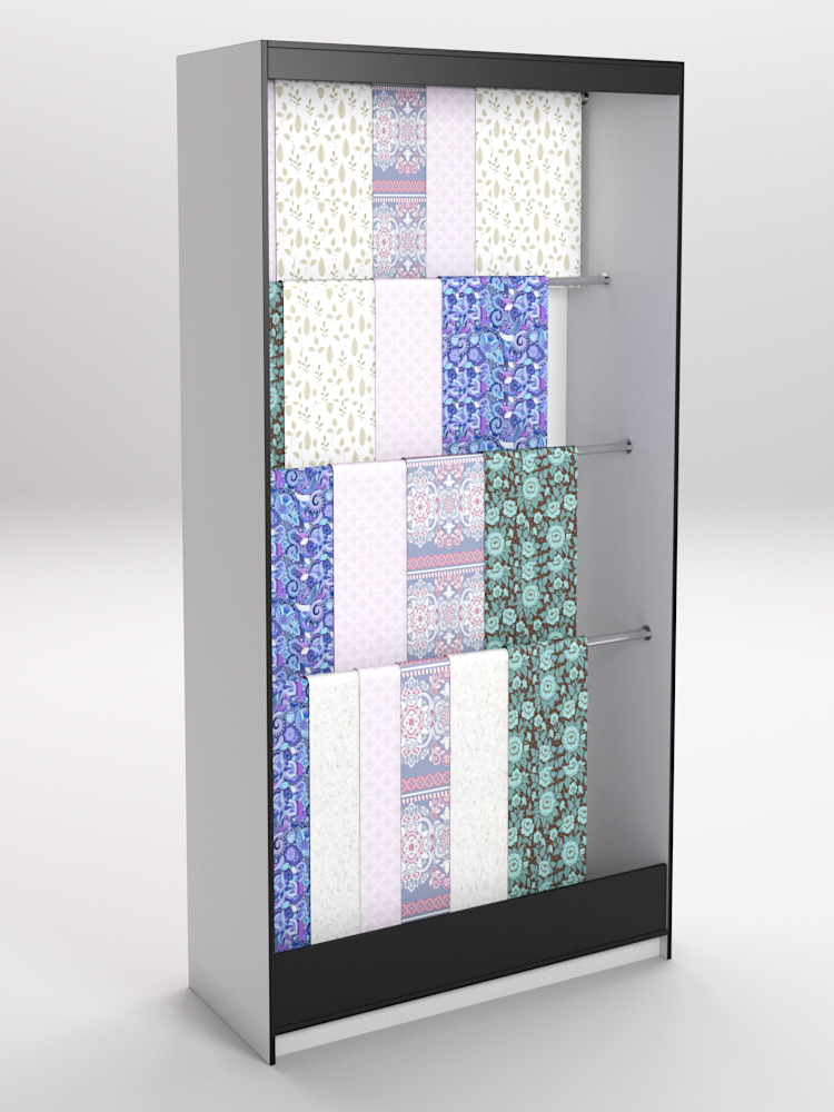 Лучшее решение для продавца — использовать специальные стеллажи. Конструкция стеллажа позволяет расположить ткань в развешенном состоянии, избавляет ее от смятия, обеспечивает легкий доступ для тактильного контакта.