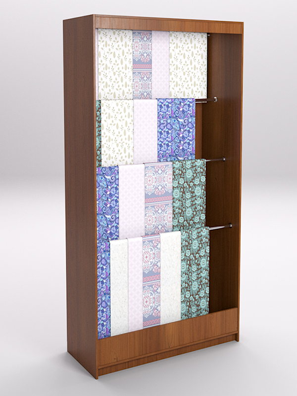 Лучшее решение для продавца — использовать специальные стеллажи. Конструкция стеллажа позволяет расположить ткань в развешенном состоянии, избавляет ее от смятия, обеспечивает легкий доступ для тактильного контакта.