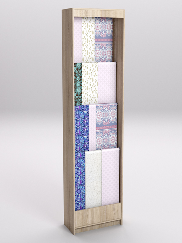 Лучшее решение для продавца — использовать специальные стеллажи. Конструкция стеллажа позволяет расположить ткань в развешенном состоянии, избавляет ее от смятия, обеспечивает легкий доступ для тактильного контакта.