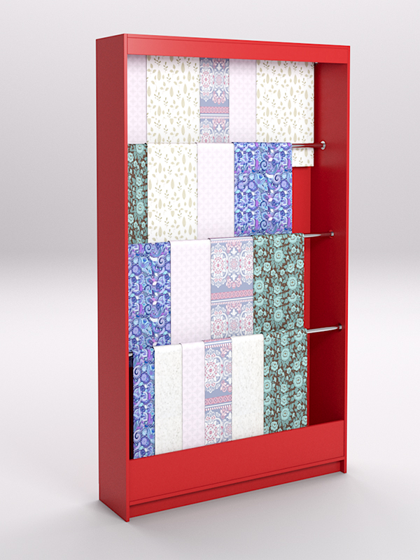 Лучшее решение для продавца — использовать специальные стеллажи. Конструкция стеллажа позволяет расположить ткань в развешенном состоянии, избавляет ее от смятия, обеспечивает легкий доступ для тактильного контакта.