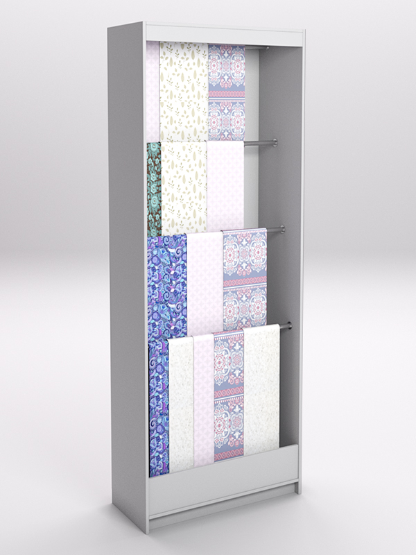 Лучшее решение для продавца — использовать специальные стеллажи. Конструкция стеллажа позволяет расположить ткань в развешенном состоянии, избавляет ее от смятия, обеспечивает легкий доступ для тактильного контакта.
