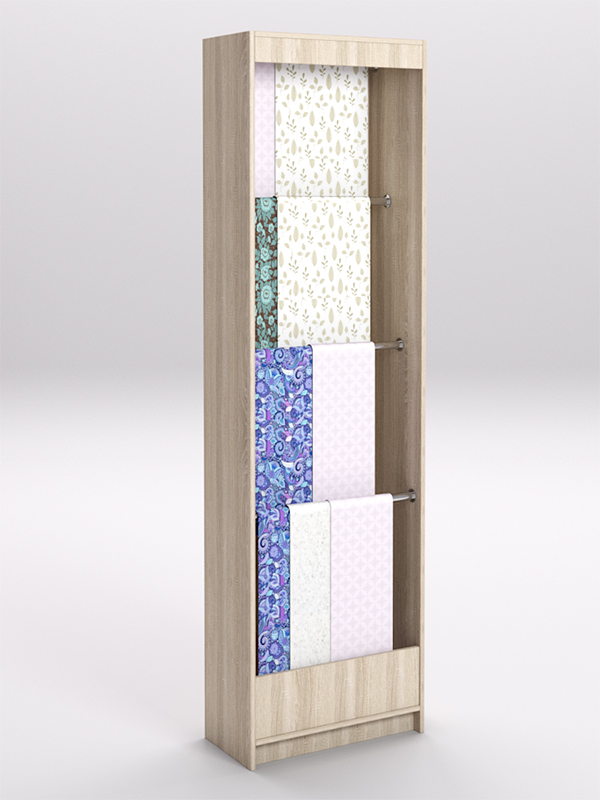 Лучшее решение для продавца — использовать специальные стеллажи. Конструкция стеллажа позволяет расположить ткань в развешенном состоянии, избавляет ее от смятия, обеспечивает легкий доступ для тактильного контакта.