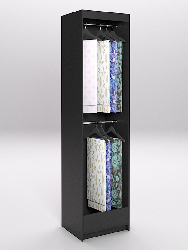 Стеллаж представляет собой стенд с двумя горизонтальными штангами. Каркас можно изготовить в другом цвете, выбрав один из вариантов, указанных на сайте.