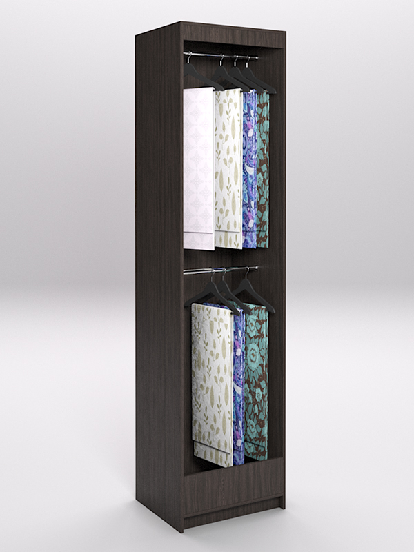 Лучшее решение для продавца — использовать специальные стеллажи. Конструкция стеллажа позволяет расположить ткань в развешенном состоянии, избавляет ее от смятия, обеспечивает легкий доступ для тактильного контакта.