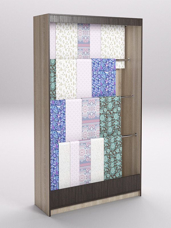 Лучшее решение для продавца — использовать специальные стеллажи. Конструкция стеллажа позволяет расположить ткань в развешенном состоянии, избавляет ее от смятия, обеспечивает легкий доступ для тактильного контакта.