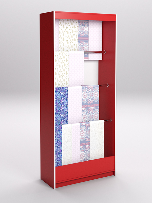Лучшее решение для продавца — использовать специальные стеллажи. Конструкция стеллажа позволяет расположить ткань в развешенном состоянии, избавляет ее от смятия, обеспечивает легкий доступ для тактильного контакта.