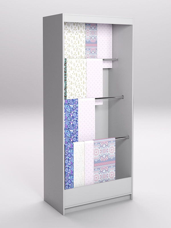 Лучшее решение для продавца — использовать специальные стеллажи. Конструкция стеллажа позволяет расположить ткань в развешенном состоянии, избавляет ее от смятия, обеспечивает легкий доступ для тактильного контакта.